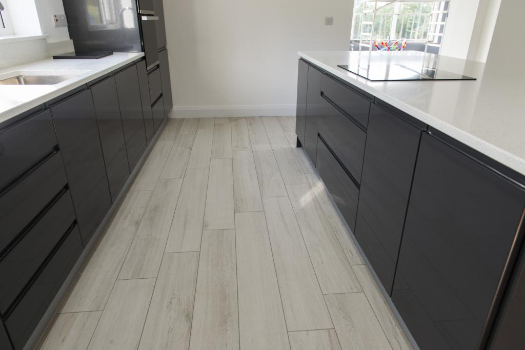 Gallo 22mm handleless door with stainless steel toeboard and Quartz worktop.